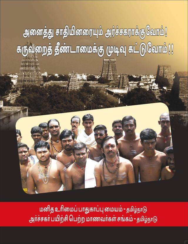 அனைத்து சாதியினரையும் அர்ச்சகராக்குவோம். கருவறைத் தீண்டாமைக்கு முடிவு கட்டுவோம்என்ற நூலை மனித உரிமை பாதுகாப்பு மையம்-தமிழ்நாடு பதிப்பித்துள்ளது. இந் நூலின் வெளியீட்டு நிகழ்ச்சி 14.03.13 வியாழன்று மதுரை உயர்நீதிமன்ற வழக்கறிஞர் சங்க அரங்கத்தில் நடைபெற்றது.